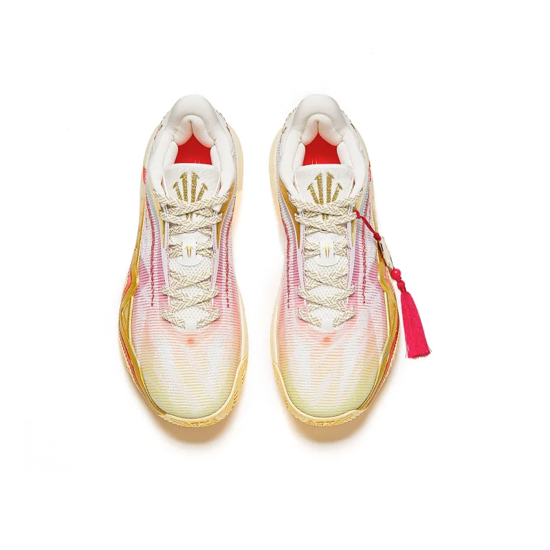 Улучшенная система фиксации стопы и TPU-вставки обеспечивают эталонную устойчивость при самых резких сменах направления. Благородное сочетание бежевого, золотого и красного цветов выделяет пару как в зале, так и в стритстайл-образах.