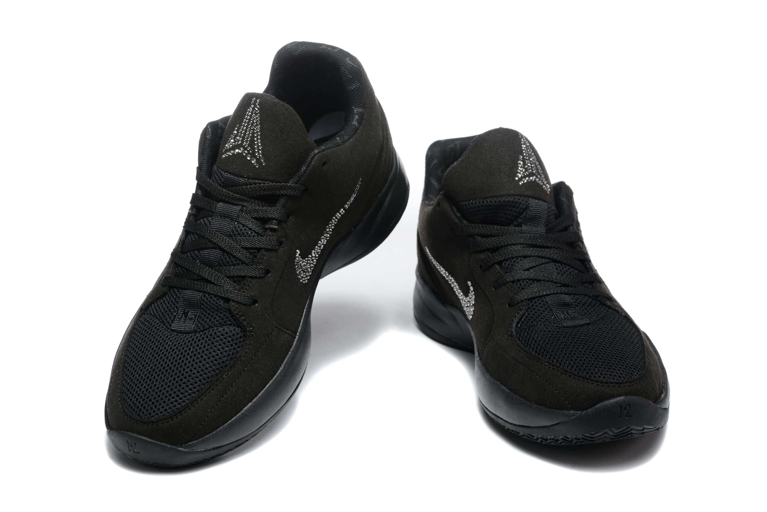 Кроссовки выполнены из высококачественных материалов, что обеспечивает долговечность и поддержку во время игры. Роскошные элементы Swarovski добавляют изысканности, делая каждую пару по-настоящему уникальной. Чёрный цвет и минималистичный стиль легко впишутся в любой гардероб.